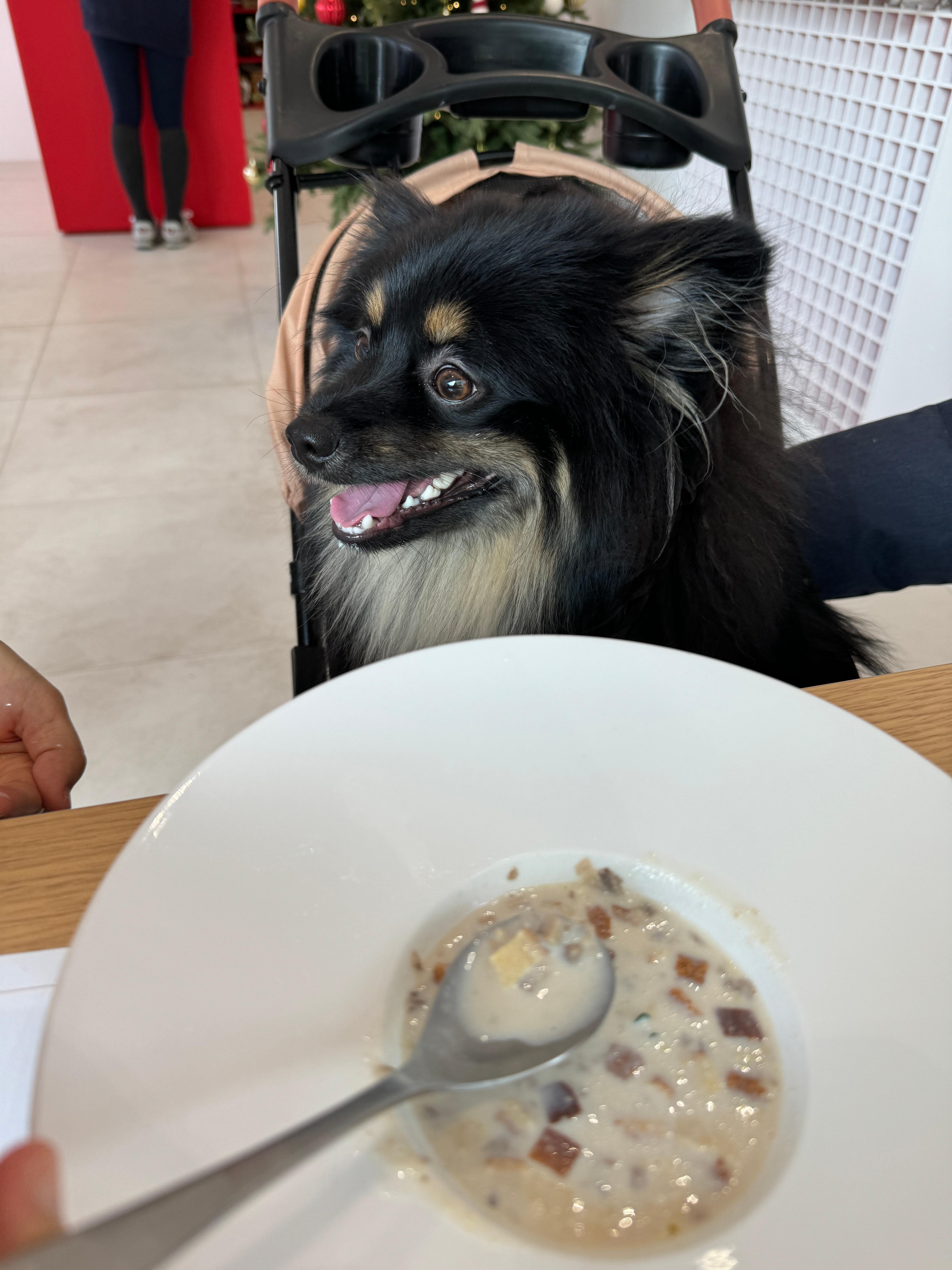 우리 단지 눈 반짝반짝 보이시나요?^^ 단지 생일 겸 크리스마스를 맞아 단지는 양식코스요리(수프-칠면조스테이크-조각케이크)를, 저희는 브런치세트와 알리오올리오를 앞에 놓고 모두 편안하니 & 맛있게 좋은 시간을 보냈더랬죠.